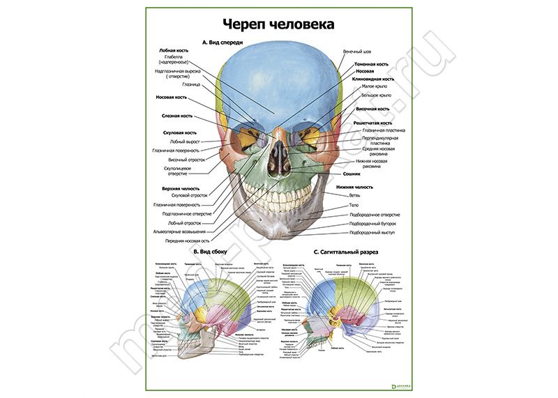 Череп человека: вид спереди, сбоку, в разрезе - отзывы