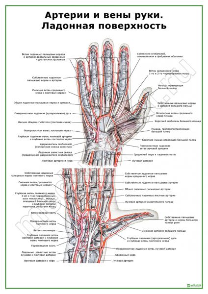 Артерии и вены руки. Ладонная поверхность